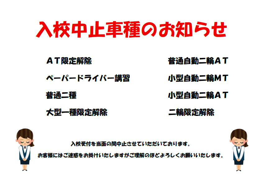 ※在留期間満了日が教習期限を満たしていない場合は、入校が出来ません。