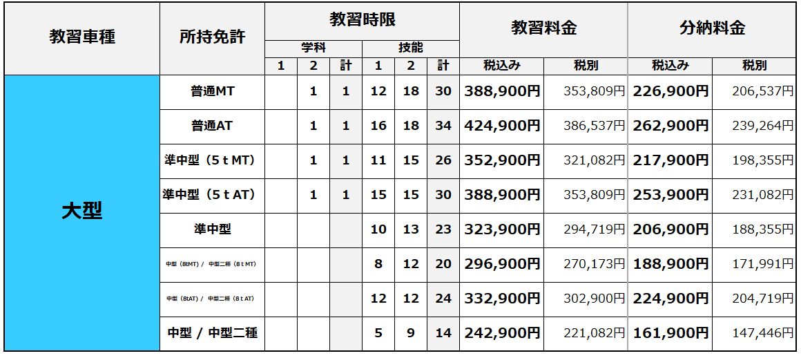 ※総額料金には県証紙代2,900円(非課税)、規定時間の教習、検定、教本代、適性検査代、写真代が含まれています。
