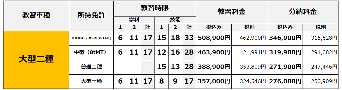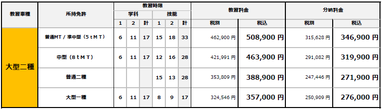 ※総額料金には県証紙代2,900円(非課税)、規定時間の教習、検定、教本代、適性検査代、SD代、応急救護備品代、写真代、その他の教育費等が含まれています。